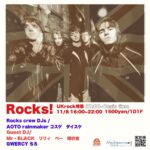 本日11月8日(土)のメディテラは!週末につき朝まで営業!『Rocks!』&『growl.』!! 16…
