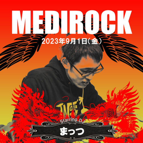 - 世間には千葉ロックという言葉があり、千葉県はロックバンド全国ツアースタートの地であり、多くのバンドシーン、ロックミュージシャンを輩出してきた。また幕張メッセをはじめ数多くの海外アーティストの日本上陸の会場となってきた。千葉に数多く眠るロック魂を掘り起こし、津田沼で最高の夜を過ごそう!今回はメディテラ古参組の中より、ロックDJとして最も美しいバランスで曲を聴かせることに定評が高い、まっつをStarring!!洗練された盛り上がりを期待できるだろう!!