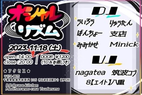 - オレンジ電気 (ヲフ・ハウス) / KAZUKI (ぐっちょろNIGHT) / YAWN (HOTEL CAPSULE MACHIDA) / ねこばばおにいさん (from VOCALOID) / ミコ(巫女)とよんでください / 小菅 大輔 (ROLLIN BOYS) / KOHEY / みろ_999 /