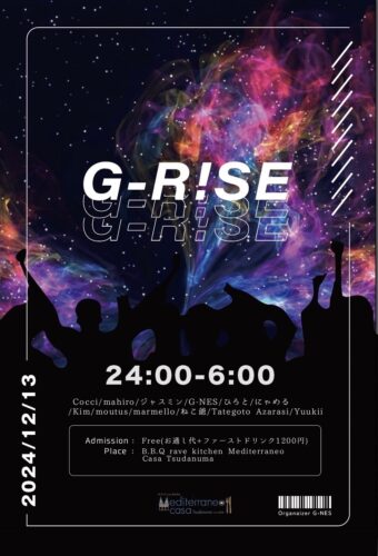 2024年12月6日(金)深夜 TITLE BassStorm ORGANIZER B.B.Q rave kitchen Mediterraneo Casa Tsudanuma(担当CeRaff) GENRE Hardstyle EVENT THEME Music ADMISSION 300(演者/0)※ご飲食につきましては1杯目とお通し代をセットで1200いただいておりますので最初にご注文ください。 START 23:59 CLOSE 翌朝6:00 DJ ch1y0/Draglite/S.Killer/pho/ねこ爺/N4Gi/QOM3T/LUCIA./Rookiz ACCOUNTING Cash on TIMETABLE 23:59-0:40 ch1y0