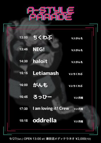 - A-POP中心オールジャンルイベント! 今期のアニソンからネットに眠るアングラ音楽、声優ノンタイまで何でも流れます!