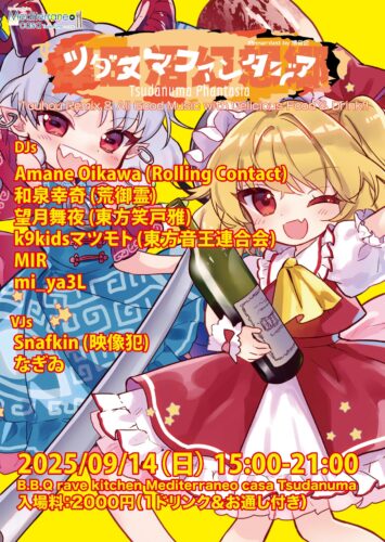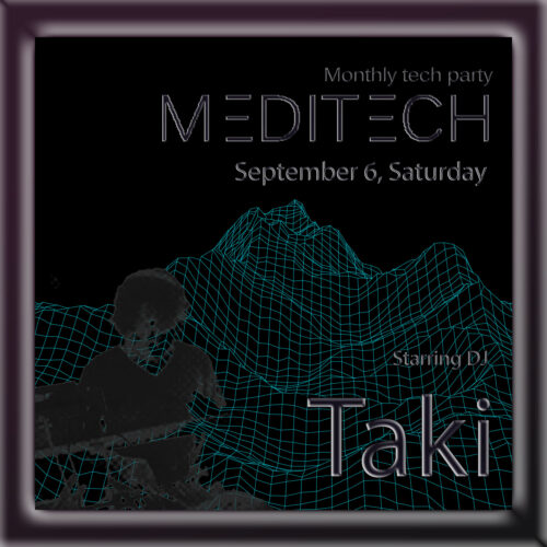 - 千葉県におけるTechno重要拠点、Mediterraneoで創業より続く老舗Techno party。都内各所のライブハウスの立ち上げ、年間100本を越えるオーガナイズの経験と、培ってきたテクノシーンからの多くの人脈を元に極東のテクノシーンを確立させるべく模索を繰り広げている。千葉県内に眠る多くのハイアビリティを発掘し、都内のエキスパート達と競合させる事でテクノシーンの再興と新興を同時に試みている。今回はMeditech古参にして東京クラブシーンのベテラン、TakiがStarring DJとして3回目の登壇。どんな状況にも確実に対応可能な、広く深いミュージックリテラシーに、間違いない一夜が確約される。