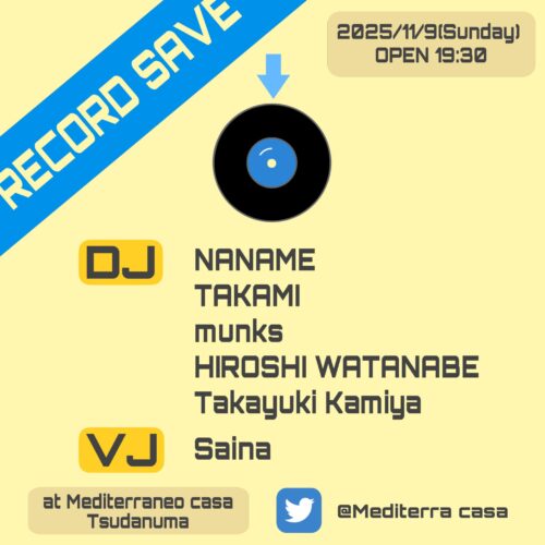 2025年11月4日(火) TITLE ヤイバの夜 ORGANIZER B.B.Q rave kitchen Mediterraneo Casa Tsudanuma(担当辰野) GENRE All good music EVENT THEME Crew ADMISSION 300(演者/0)※ご飲食につきましては1杯目とお通し代をセットで1200いただいておりますので最初にご注文ください。 START 18:00 CLOSE 23:59 FLOOR STYLE Seating AMBIANCE cheerful-楽しい ACCOUNTING Cash on DESCRIPTION メディテラ最古のパーティにして最もゆるゆるで楽しい一夜!!店主辰野の高校生時代から音楽でつながる股肱の友人「ヤイバース」が原点。そのコミュニティの熱を取り戻し、新しい輪へと発展させる大切な集い。音楽と酒と仲間を楽しむ「絶対楽しい」パーティ、ぜひお気軽にご参加ください!!今回は、B2Bやライブ」のてんこ盛り!!面白すぎるユニットだらけ!!本気で悪ふざけしよう!! TIMETABLE 18:30-19:00 音斬乱風